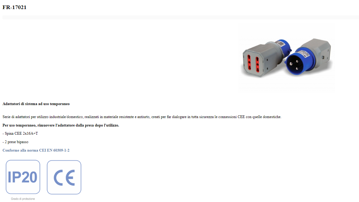 Adattatore CEE-2 bivalente per uso industriale/domestico - Elettroapparecchiature Friggeri