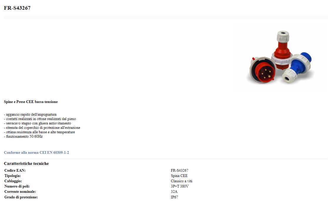 Conforme alla norma CEI EN 60309-1-2