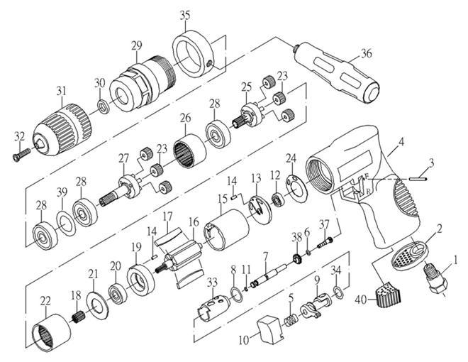 Trapano reversibile pneumatico con mandrino autoserrante 1-13 mm -Fasano